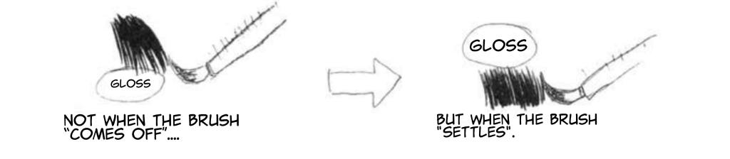 In Gintama. for the gloss and the parts to be painted completely black, I use a pen with a brush tip, the Pentel one with an extra-fine tip. The secret is to always picture the direction of the hair.