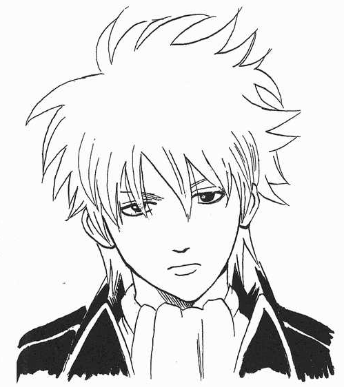 Above is “Mad Bull” Kamo Serizawa, and below is Sanosuke Harada. I had various characters like that in mind… Anyway, absorbing them all… Gintama was born! Although the first episode, the one approved at the meeting to decide on the serial publication, was different: Shinpachi was already part of the Yorozuya and together with Gin-san he saved a samurai who looked like the comedian Cha Kato. But since it seemed a bit too sober, because there were only middle-aged male characters, I changed the story… When I get distracted, my manga tends to be invaded by middle-aged men!