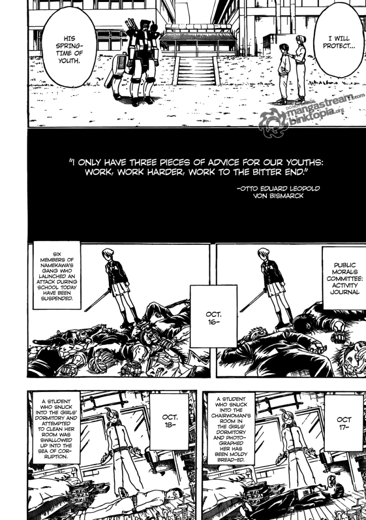 – Hideaki Sorachi in WSJ issue 46 (October 2010)(Credits to Hi Wa Mata Noboru for the scanlations)