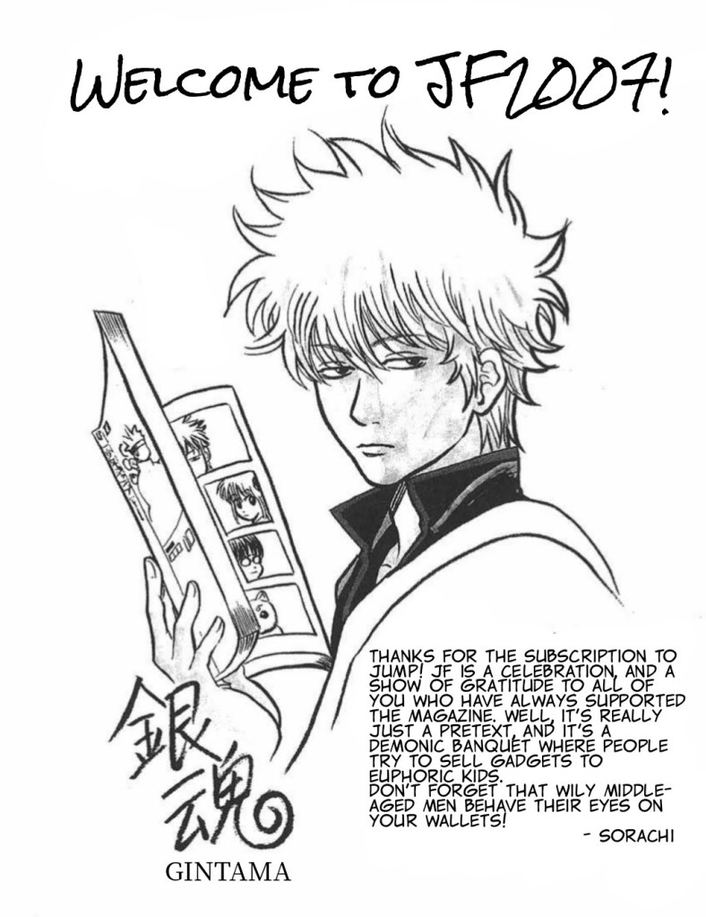 Thank you for buying the 21st volume! So, it’s been decided that Mr. Onishi, the Gintama editor I’ve always made fun of in these extra pages, will be working on something else. Please give him a round of applause as he is a hero for taking care of me for so many years despite all the letters that wanted him dead. I too have continued to insult him, but after more than a five-year period together I feel a bit sad. As a student, I was the type who couldn’t adjust to a new class, so I pretended to sleep on the desk for about a week. The sense was “It’s not that I don’t have any friends, I’m just sleepy”. So I’m very anxious. Just the thought of having to start all over again with a new editor, like in my school days when I was hoping someone would talk to me, gives me a kind of blockage. If he were as introverted as I am, I wouldn’t know what to do. If we both bent over the desk, we couldn’t have meetings….