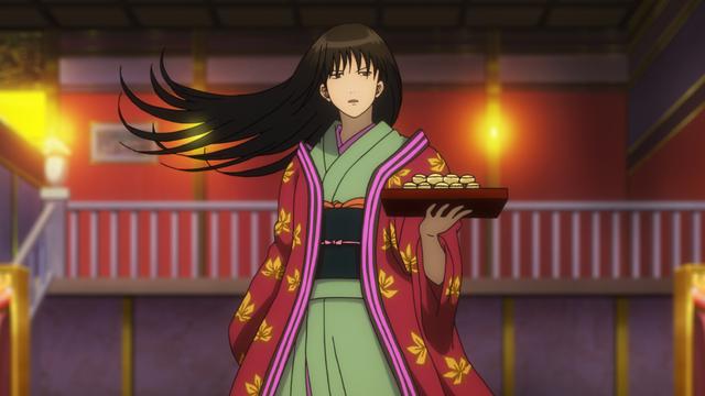 The unsettling atmosphere at the end of the story creates a different from the previous Gintama story arcs. The delicate acting in the scene between Shigeshige and Princess Soyo was done by Yuki Masutani.