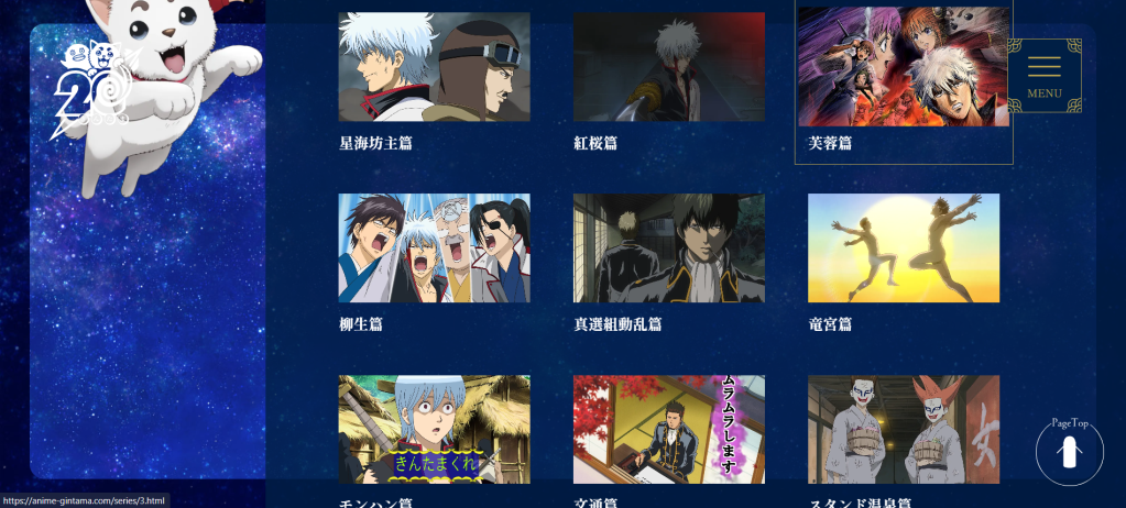 The official Gintama website has been updated following Gintoki’s birthday, which came with an info update on the upcoming Ginpachi Sensei multiverse anime. One of the updates consists of a new section dedicated to synopsis of each story arc in the anime, the episodes that cover the arc as well as their number, and the manga volume and chapters/lessons from which the animated arc is adapted from. Under each arc’s page, there are also links redirecting to the Shueisha page for each volume, and the Bandai Namco Entertainment page for the episode where each arc begins.