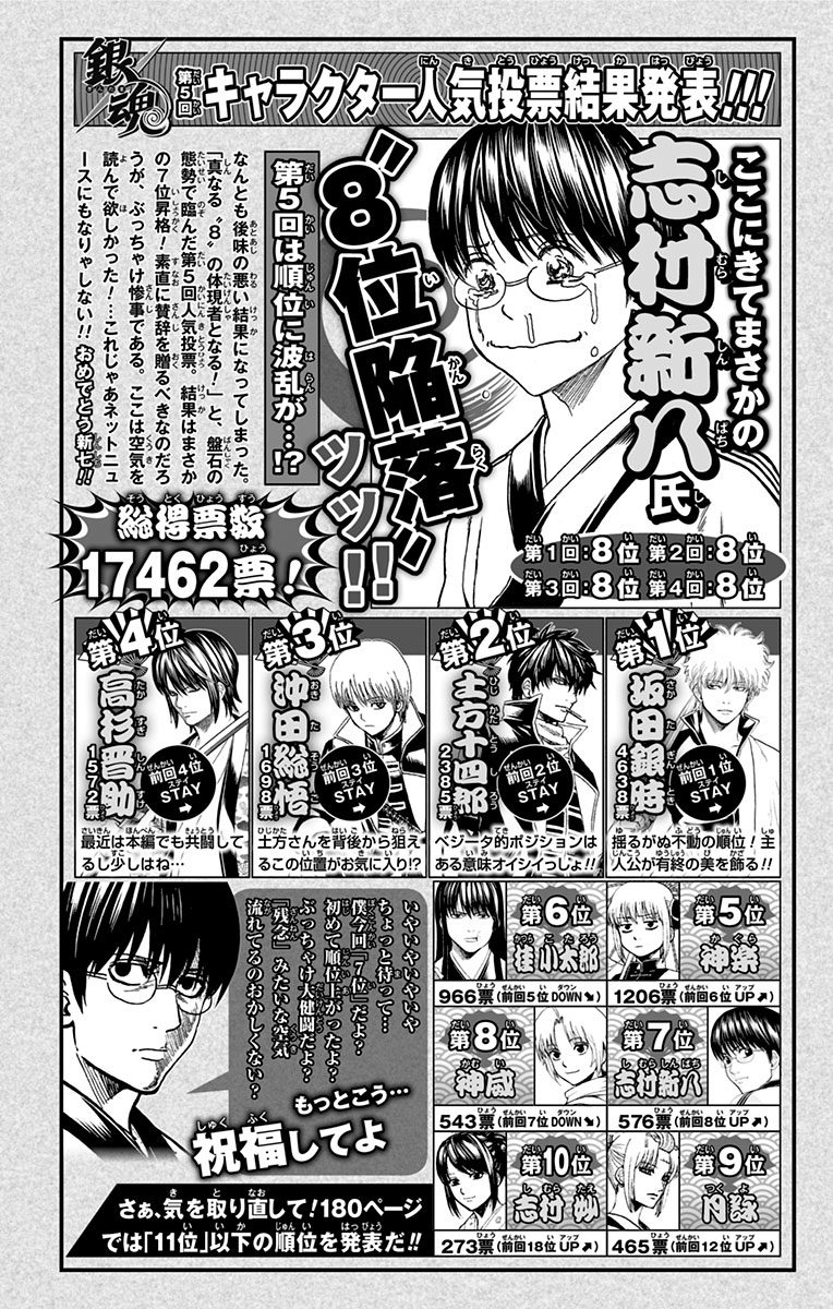 Honestly, this result leaves a bitter taste in the mouth. Shinpachi was convinced that he was the ’embodiment’ of 8th place, but he was promoted to 7th.
